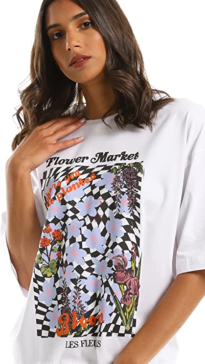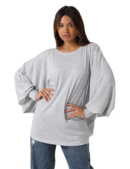 بلوزة فضفاضة مرقشة باكمام واسعة للنساء