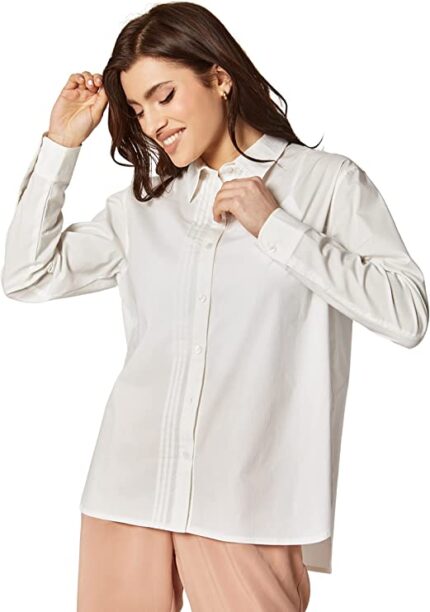 بلوزة بيسيك سادة بياقة قميص واكمام طويلة للنساء