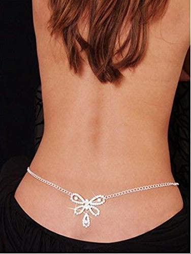 سلسلة للبطن واسفل الظهر على شكل فراشة للنساء (فضي)