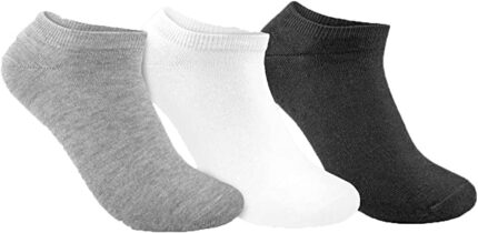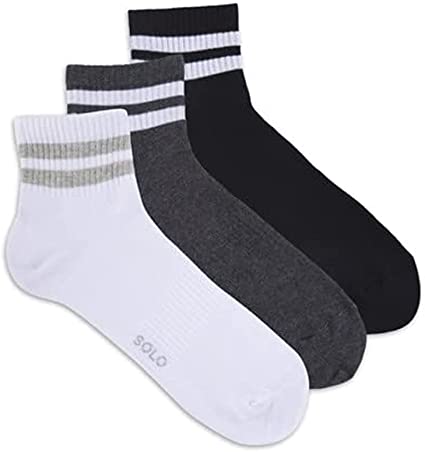 طقم شرابات رياضية قصيرة للكاحل ، من 3 قطع، – ابيض – اسود, One Size