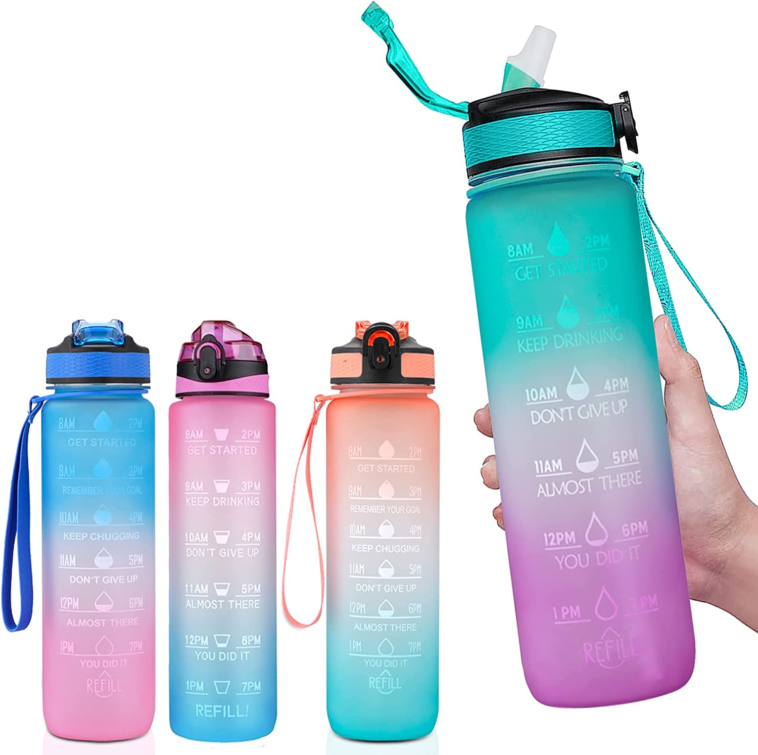 زجاجة ماء تحفيزية سعة 1 لتر مع محدد للوقت وشفاطة، خالية من مادة التريتان وخالية من البيسفينول A، زجاجة مياه رياضية قابلة لاعادة الاستخدام، للجيم والمكتب والتمارين الرياضية