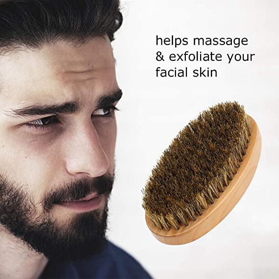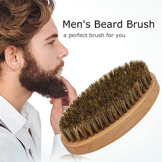 فرشاة اللحية للرجال بمقبض خشبي لتلطيف وتنعيم شعر الوجه والعناية بالبشرة واللحية حجم الكف