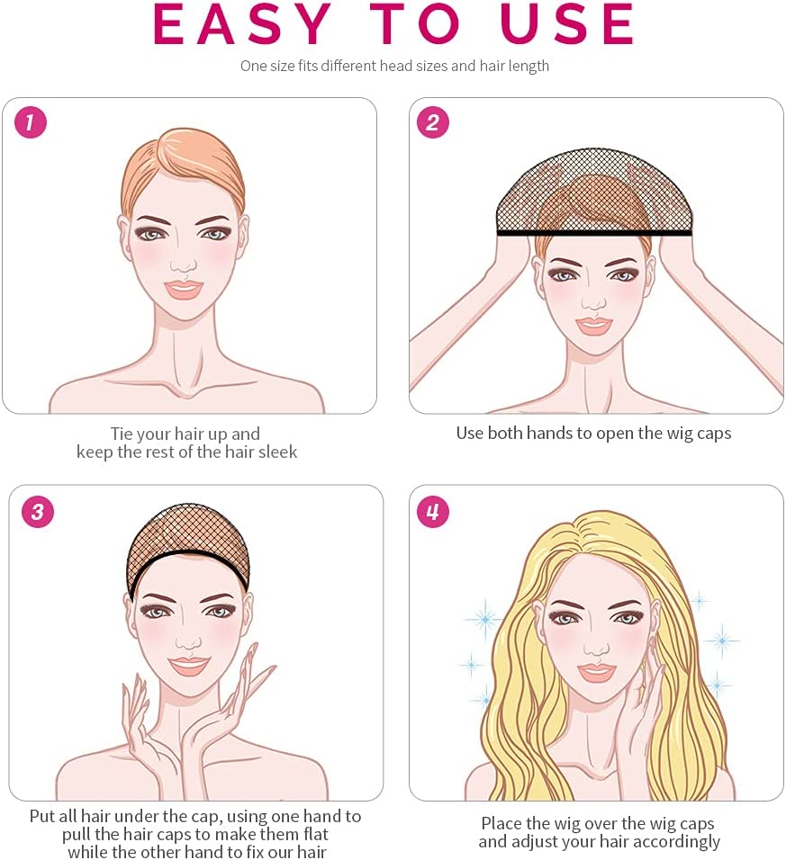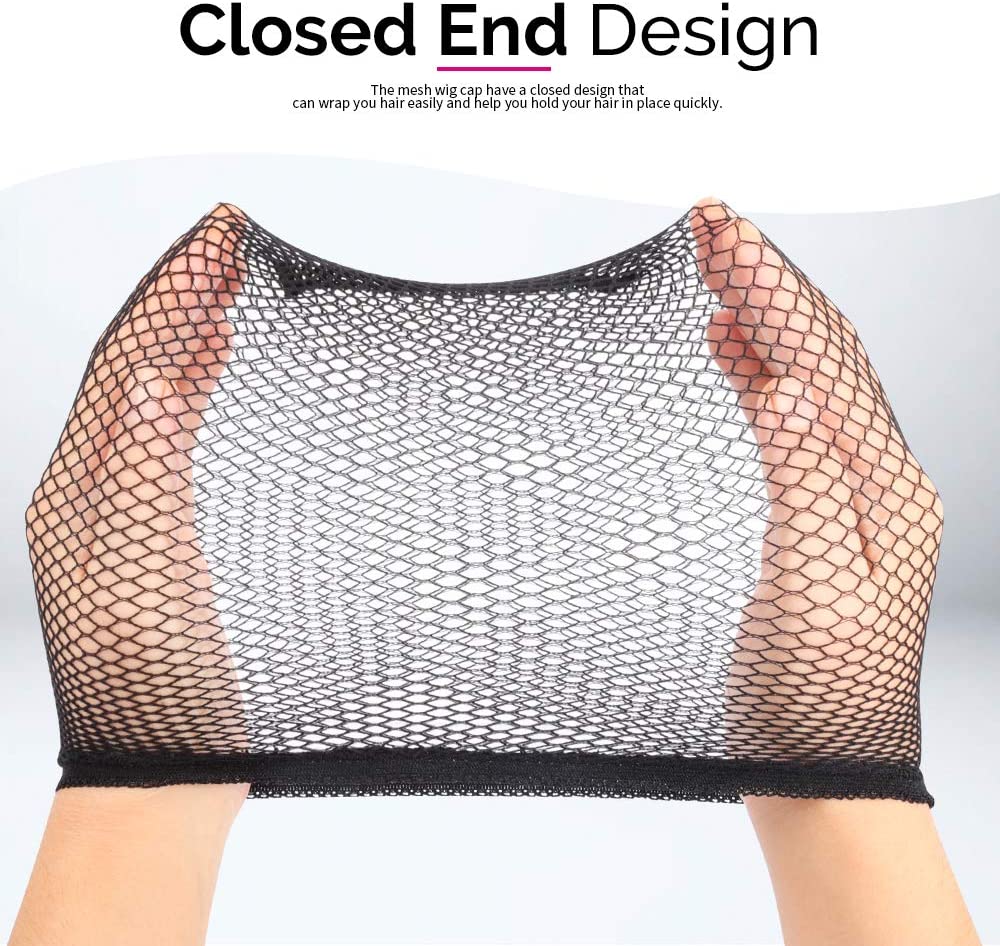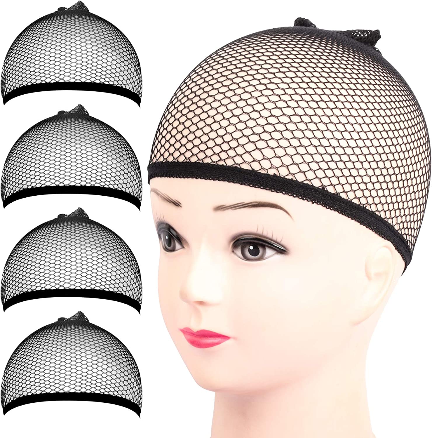 قبعة شعر مستعار ، 4 قطع شبكية سوداء، شبكة شعر مستعار، قبعات شبكية مغلقة من الطرف للنساء، والرجال، والأطفال